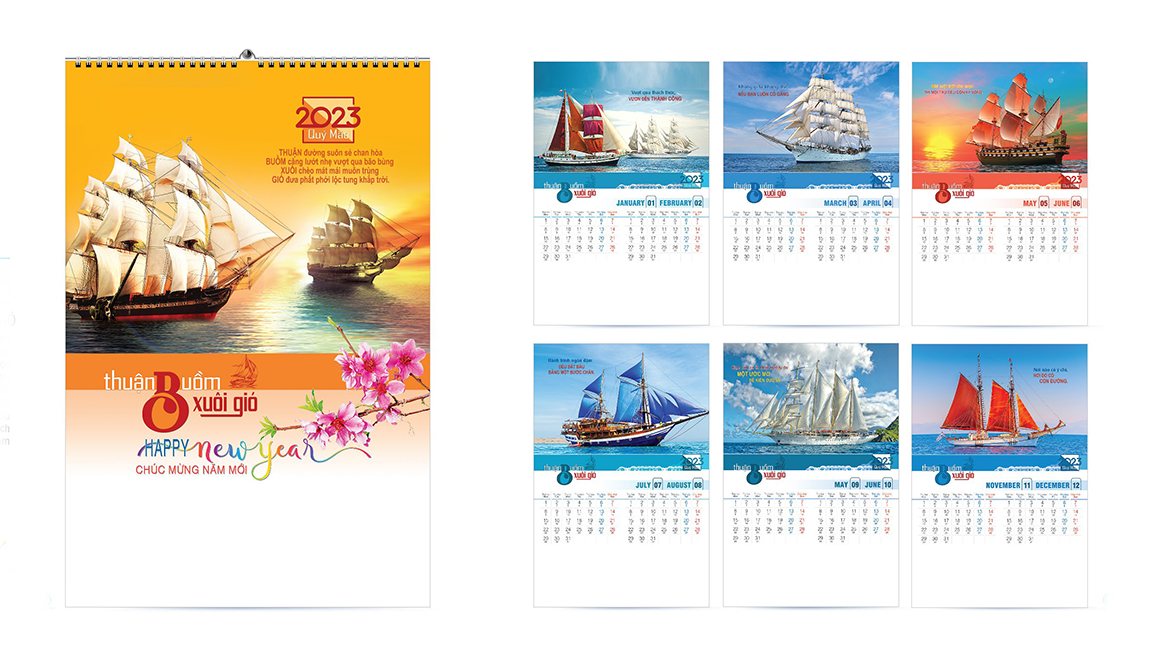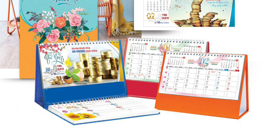 - Lịch Tết thiết kế in ấn độc quyền: Đây là hình thức khá phổ biến được các doanh nghiệp lựa chọn. Bởi lẽ, những cuốn lịch này ngoài những thông tin về doanh nghiệp, nó còn thể hiện văn hóa doanh nghiệp, lĩnh vực kinh doanh của doanh nghiệp hoặc cũng có thể là những thông điệp mà doanh nghiệp muốn truyền tải tới khách hàng, đối tác và cán bộ công nhân viên của doanh nghiệp … thông qua những hình ảnh, những câu định vị cho từng tháng, từng tuần. Ngoài ra, bố cục của những tờ lịch cũng được thiết kế riêng cho từng doanh nghiệp để phù hợp với ngành nghề kinh doanh của mỗi doanh nghiệp.